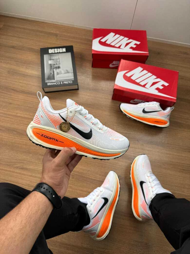 O Tênis Nike Zoom X Vomero 18 é a escolha perfeita para quem busca conforto, performance e estilo em cada corrida ou treino. Com um design moderno e sofisticado nas cores branco e laranja, ele se destaca tanto na pista quanto no uso casual do dia a dia.